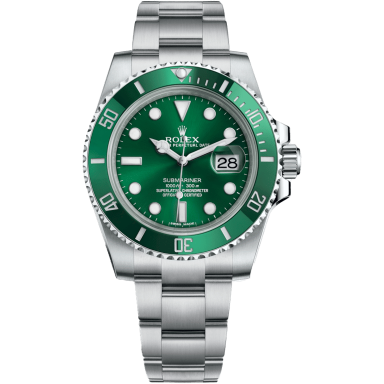 40mm Stainless Steel Case, Bidirectional Rotating Bezel In Black & Green Ceramic, Black Dial Featuring a Date Indicator At 3 o’clock, Automatic Movement, On a Stainless Steel on Oyster Bracelet.